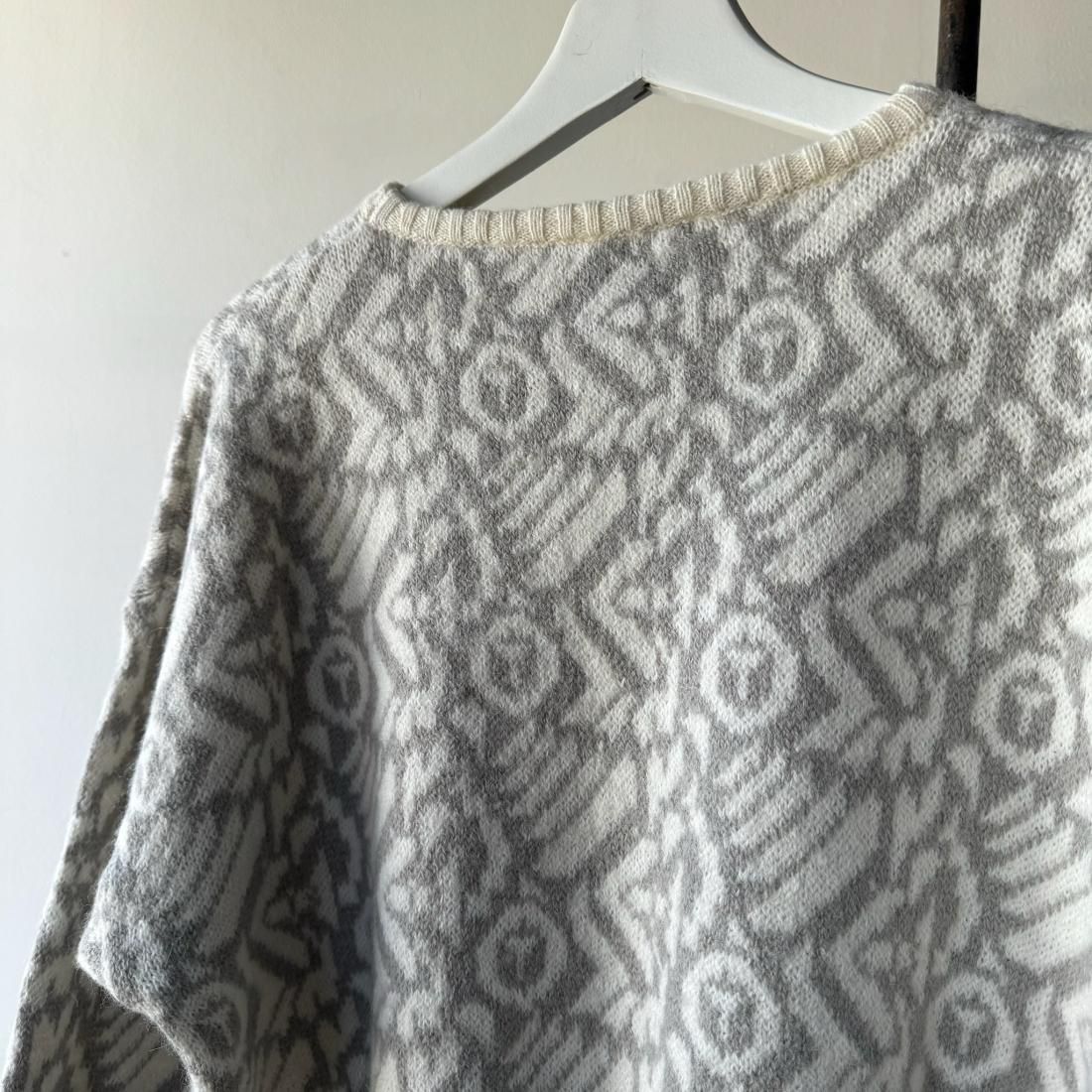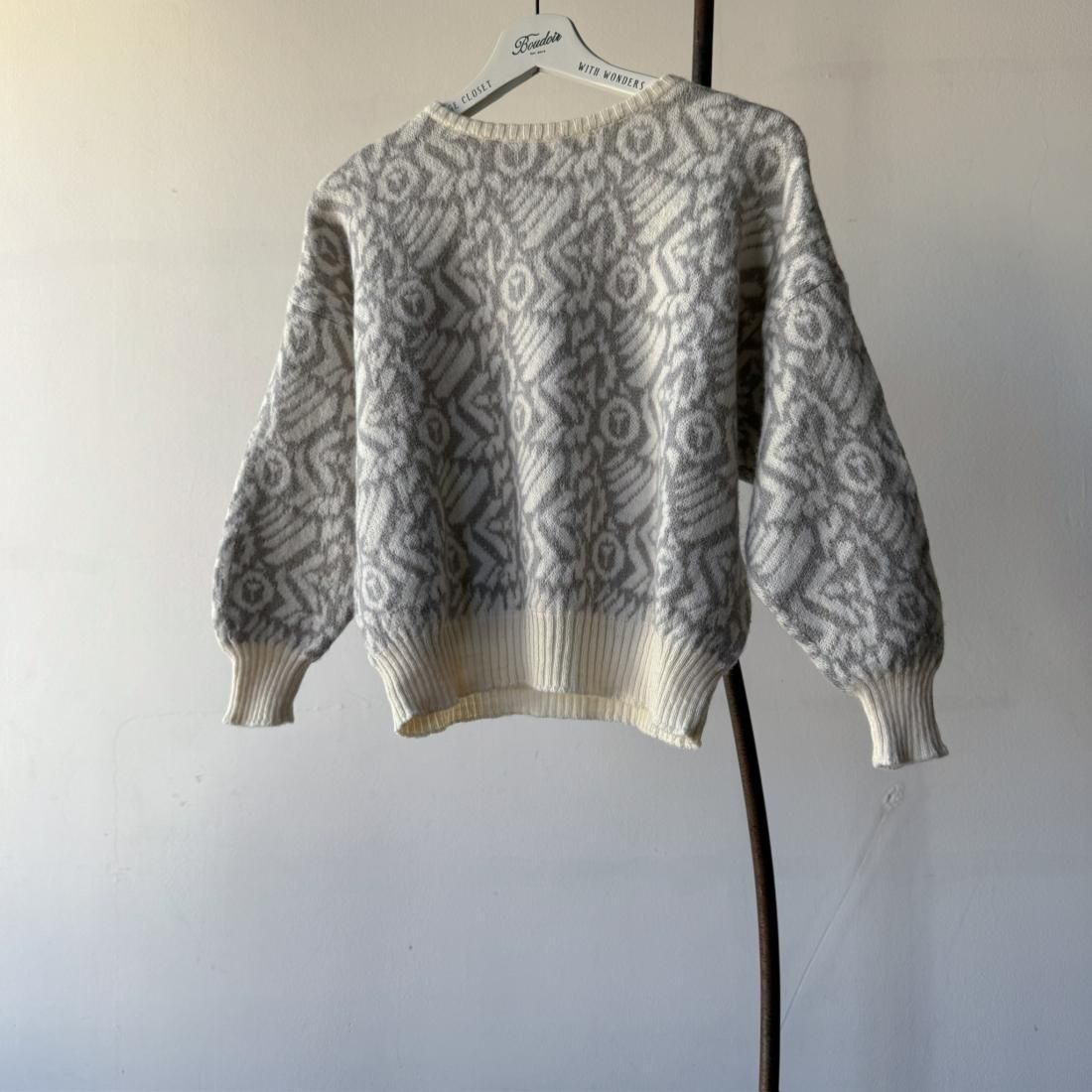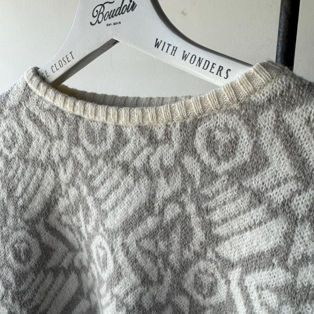 80s White Gray Jacquard Cropped Knit Sweater