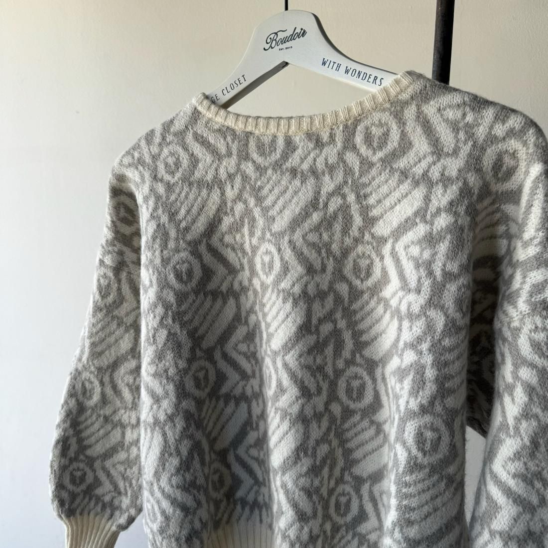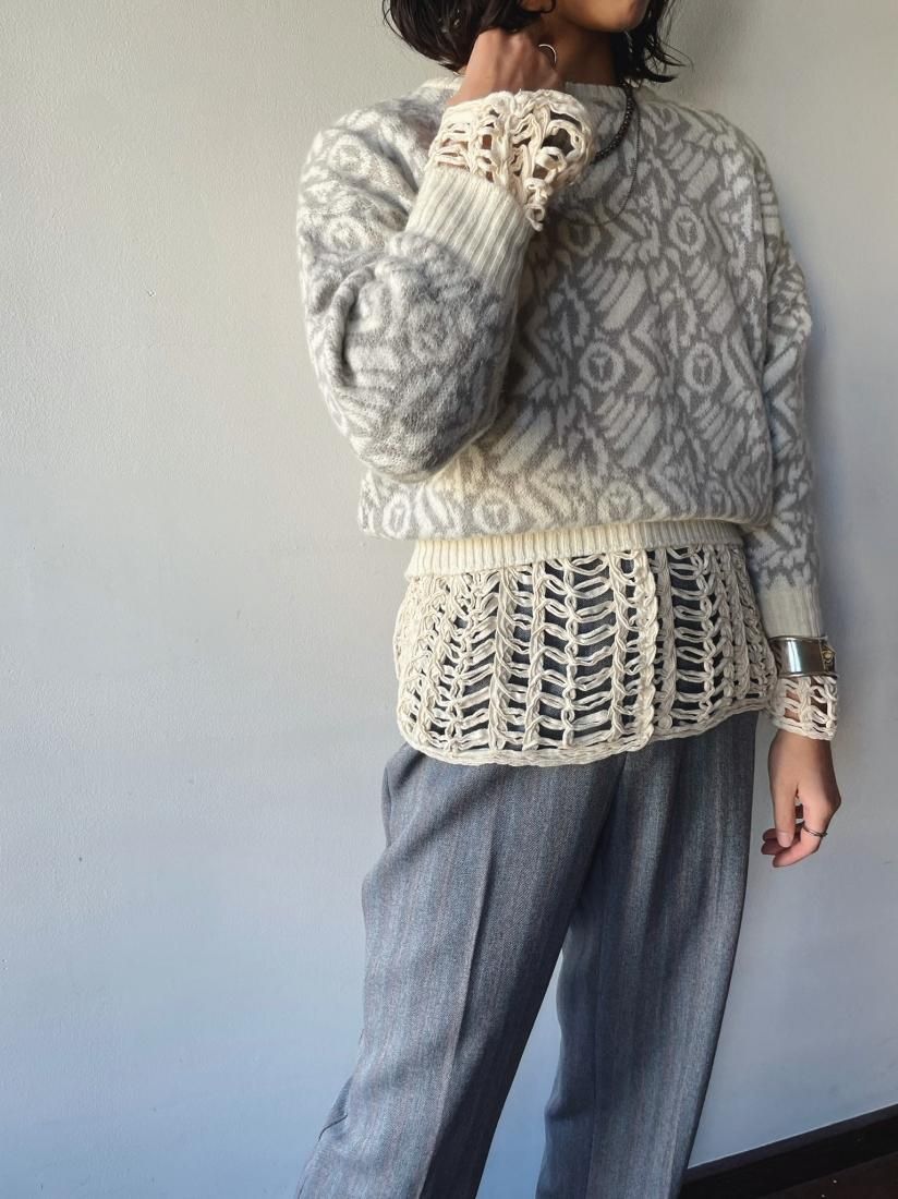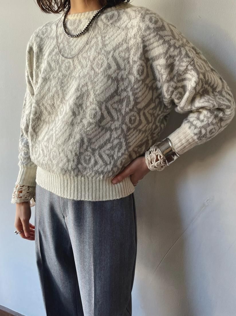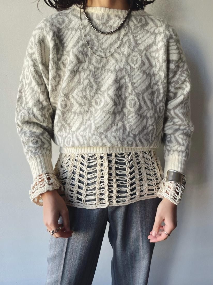 80s White Gray Jacquard Cropped Knit Sweater