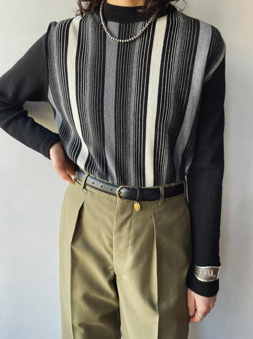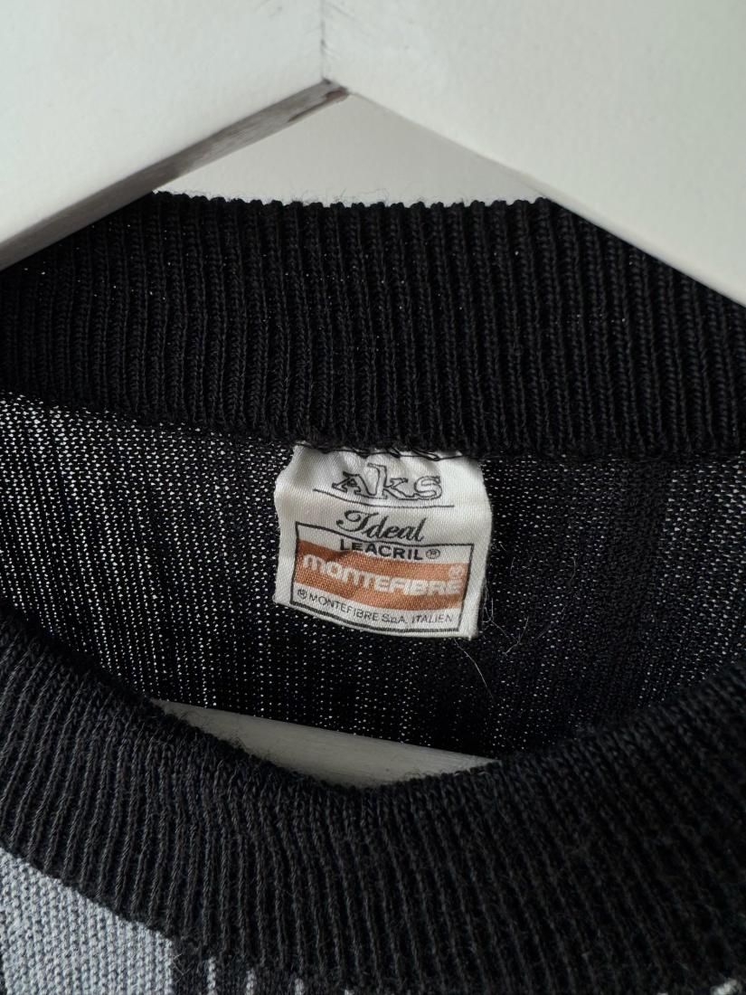 70s Black Gray Stripe Knit Top