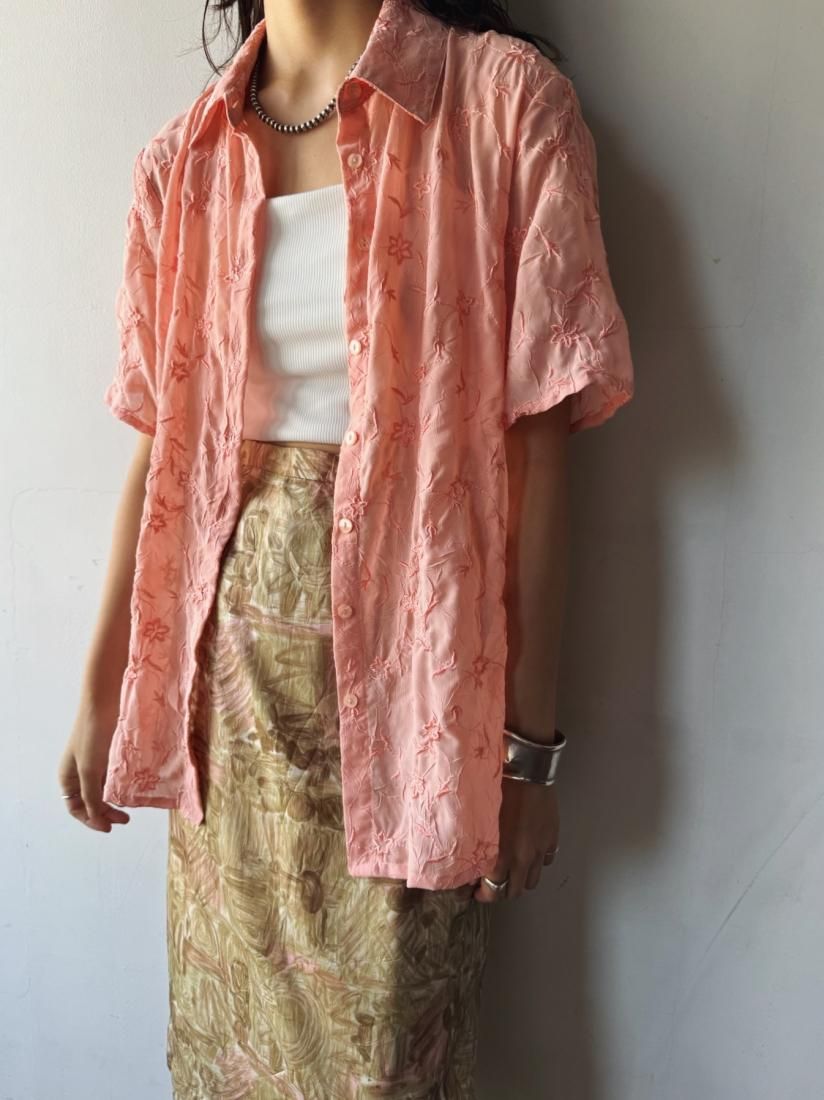 90s Pink Embroidery Shirt