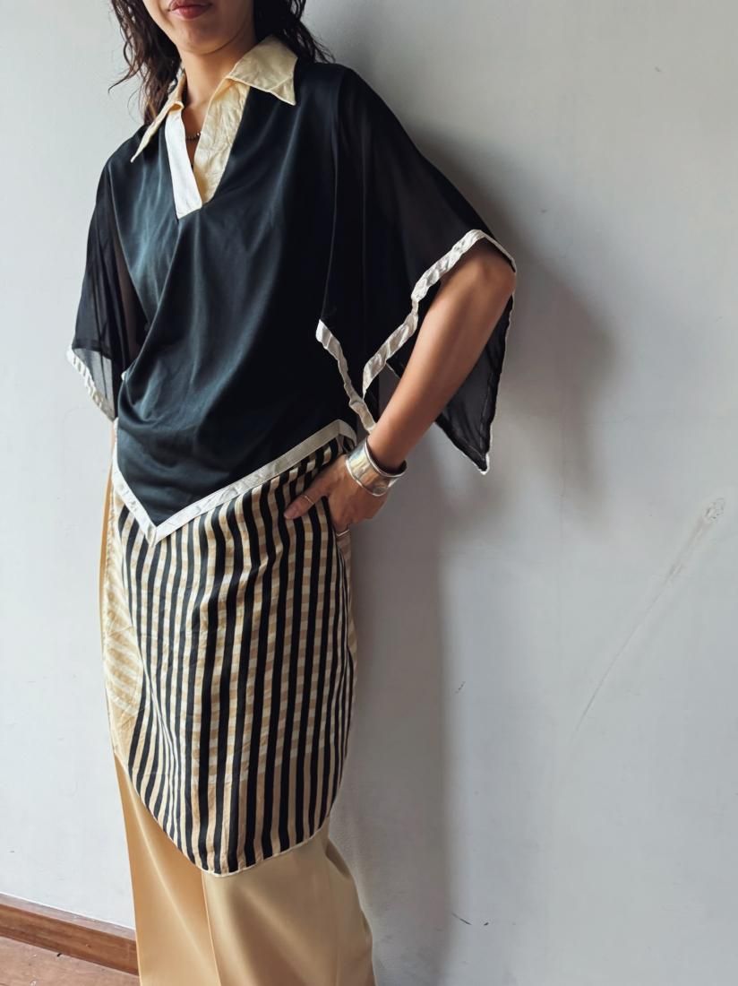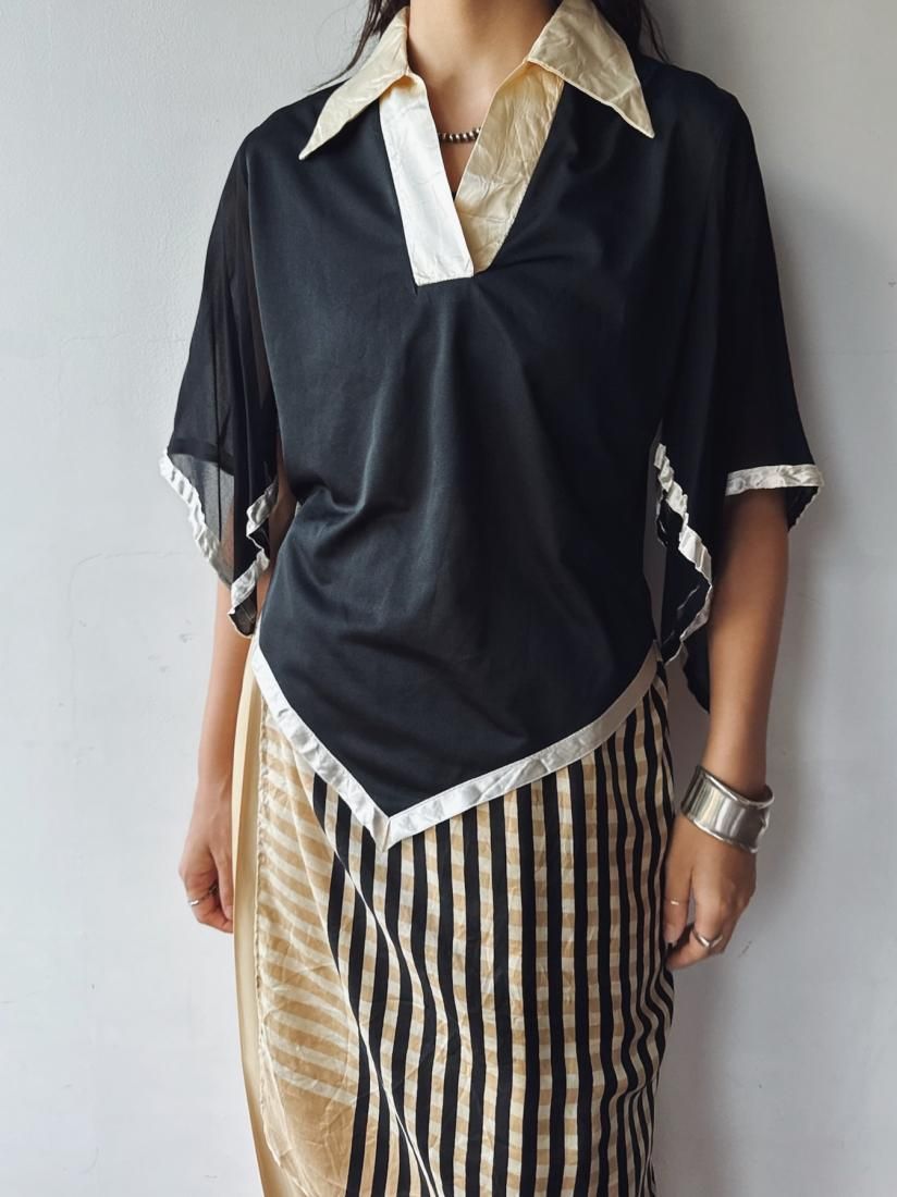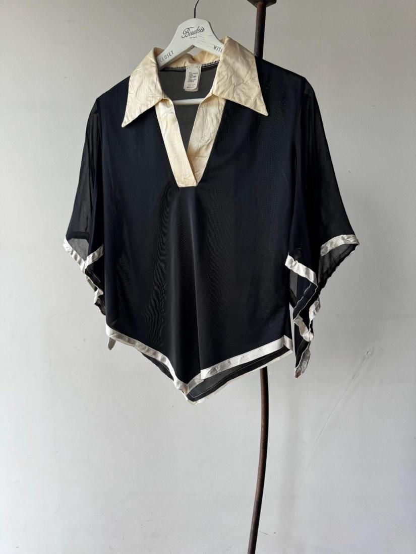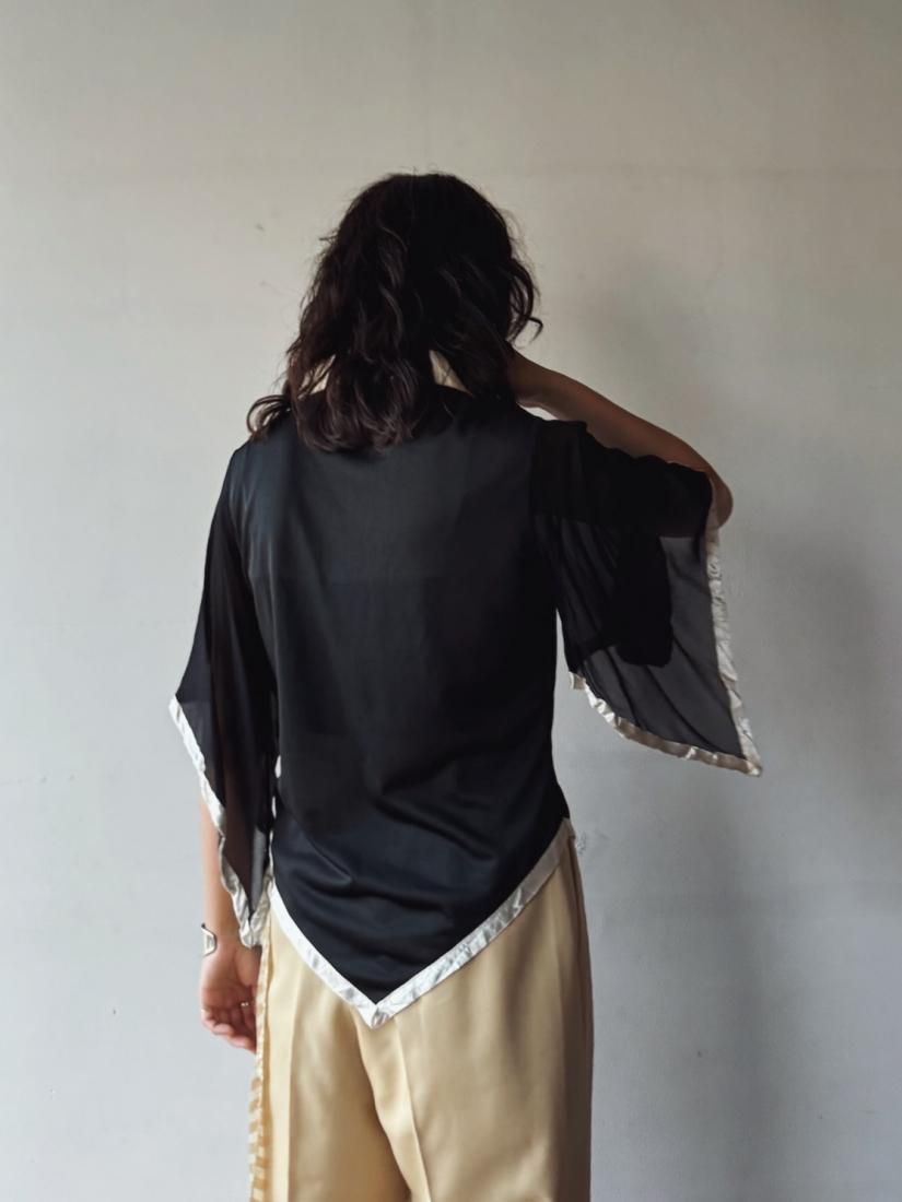 70s Black Cape Sleeve Blouse
