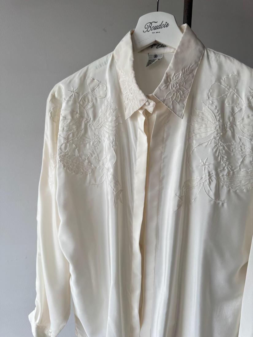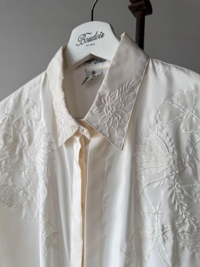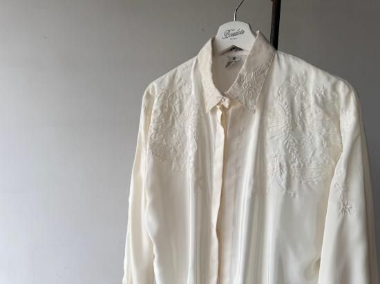 ¡ÚOutlet¡Û80s Ivory Embroidery Blouse