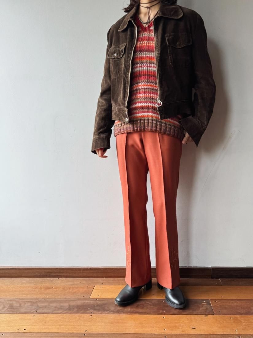 70s Brown Beige Jacquard Knit Top