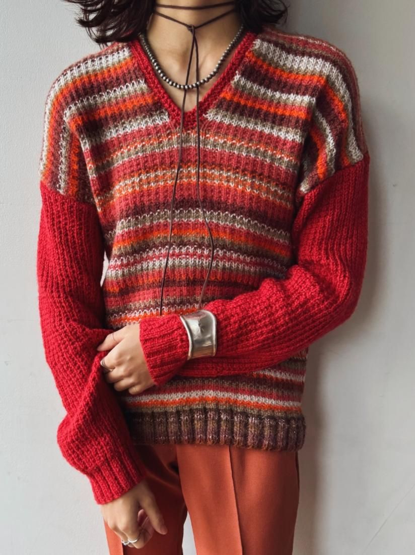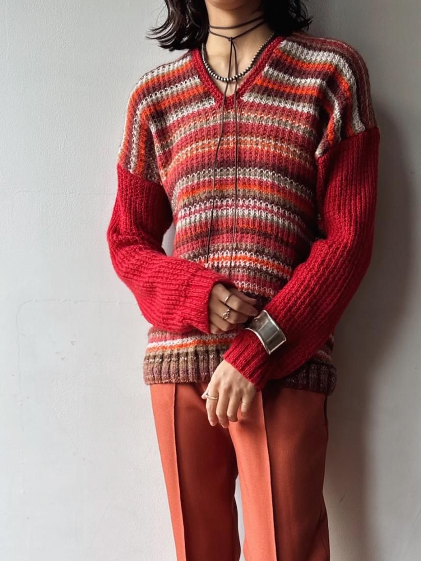 Red Multi Stripe Knit Sweater