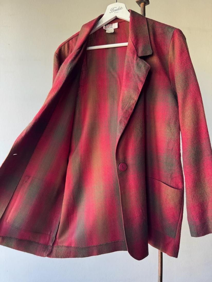 90s Red Plaid Light Tailored Jacket