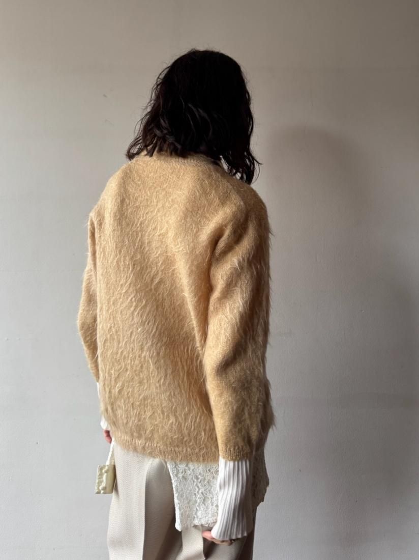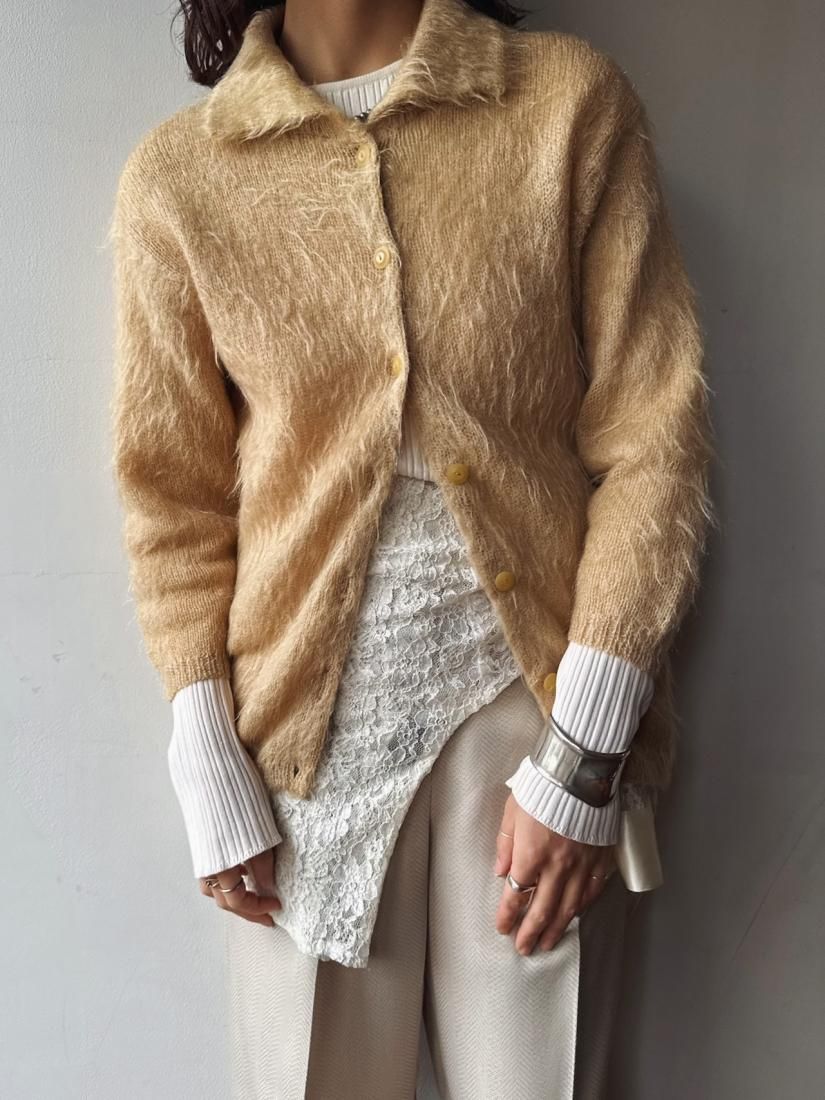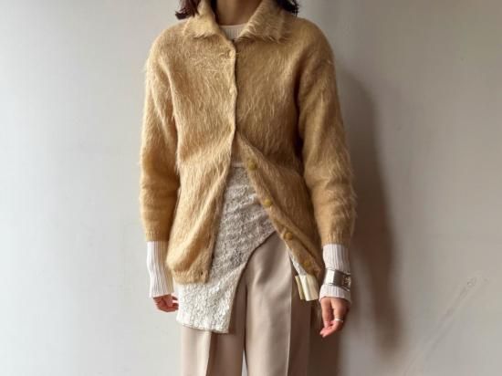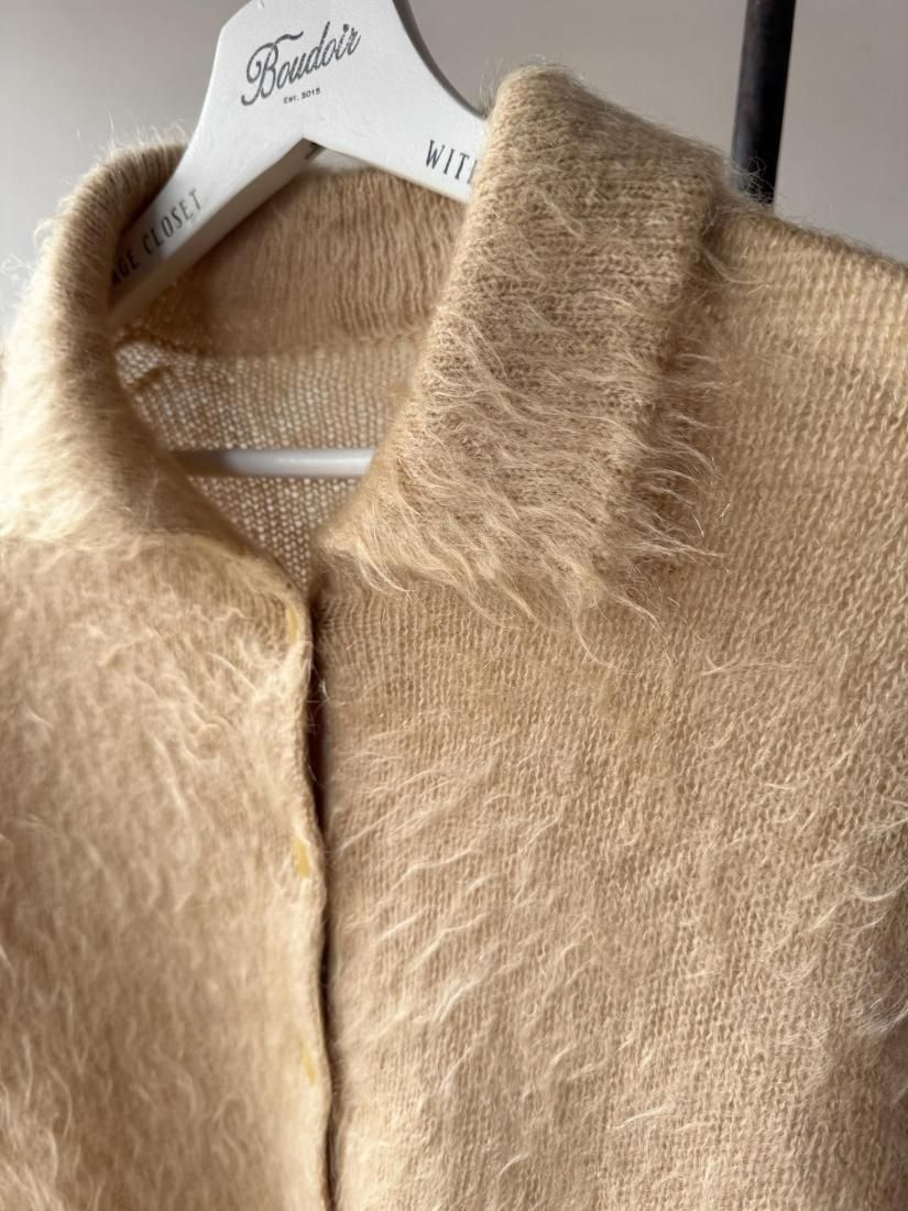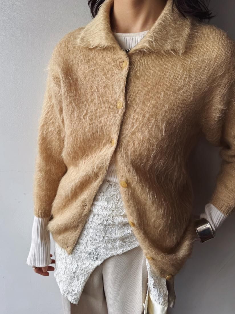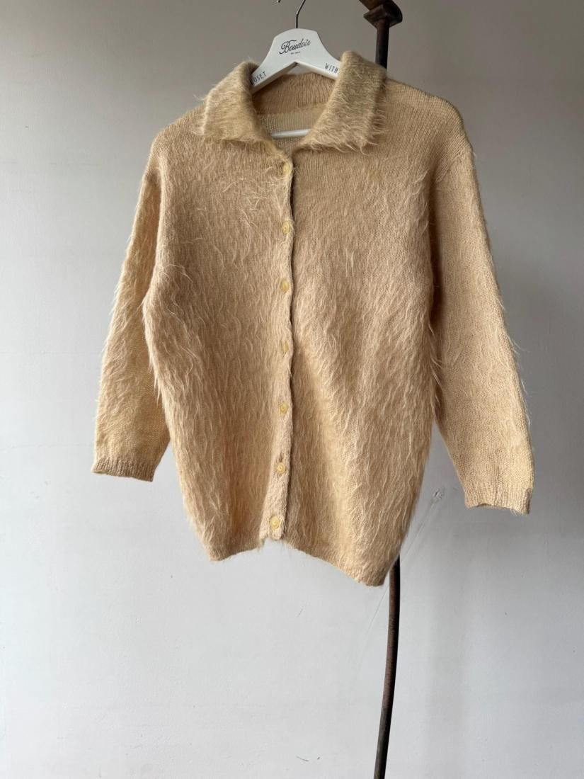 60s- Beige Shaggy Knit Cardigan