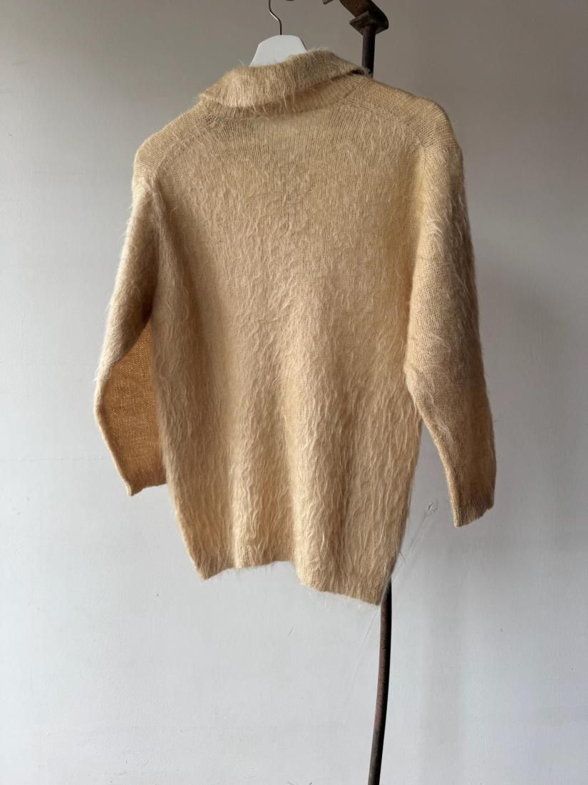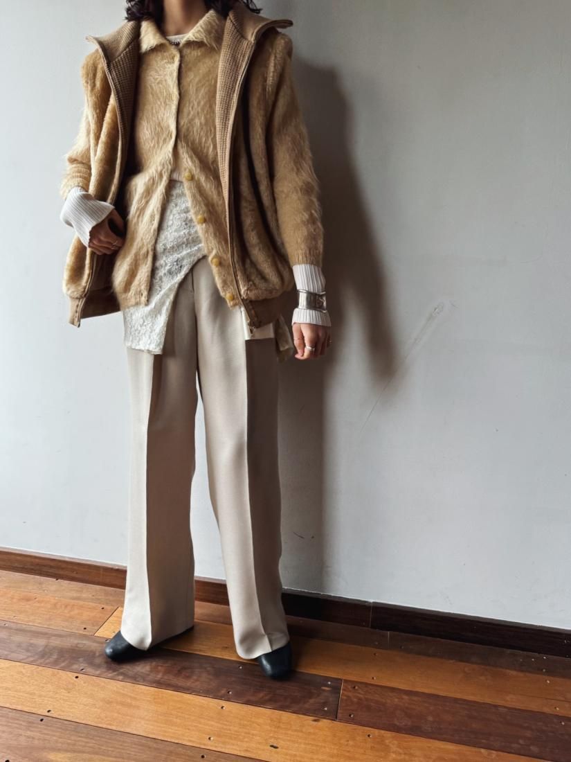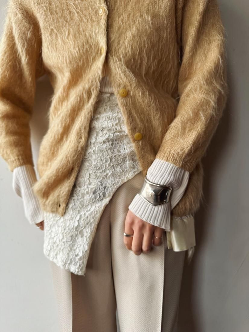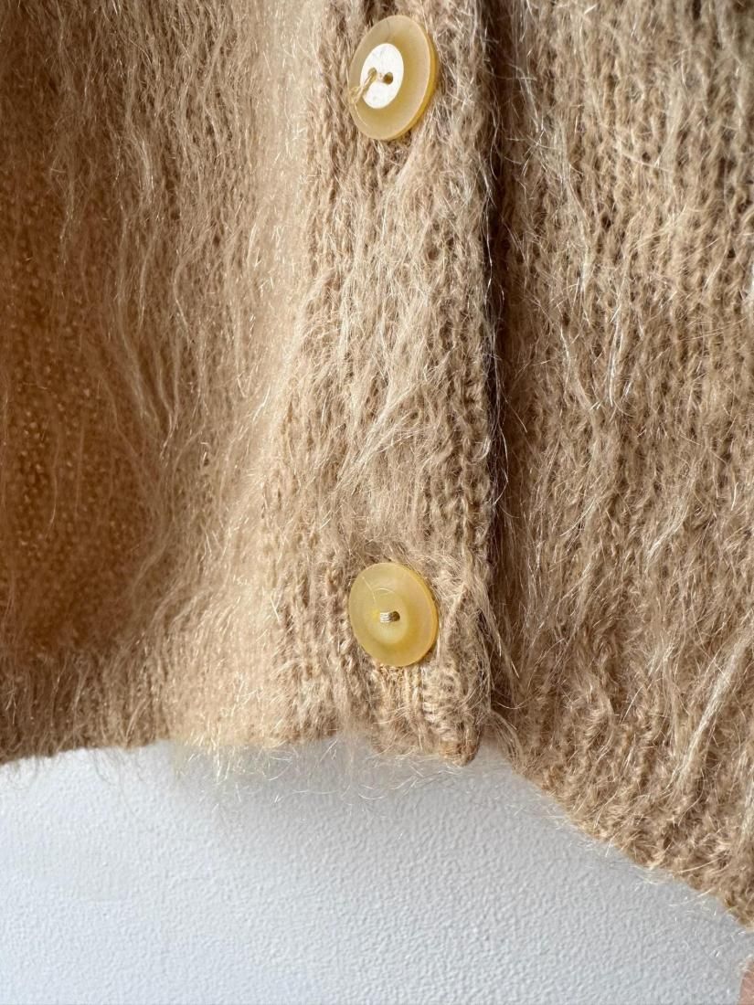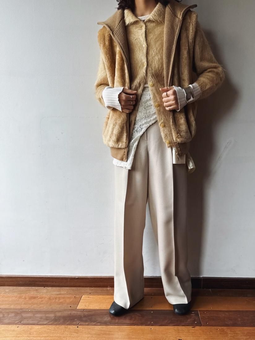60s- Beige Shaggy Knit Cardigan