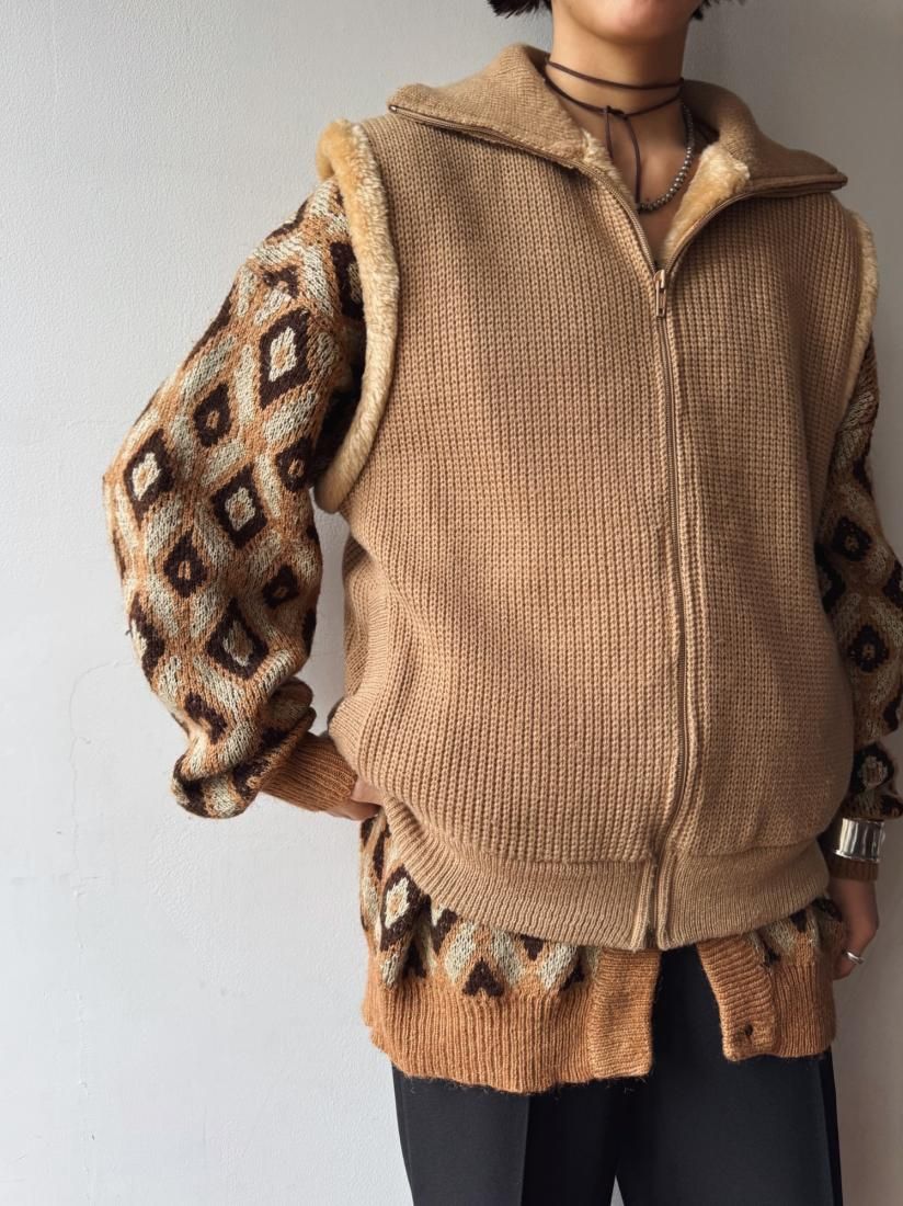 50s- McGREGOR Camel Brend Front Zip Knit Cardigan